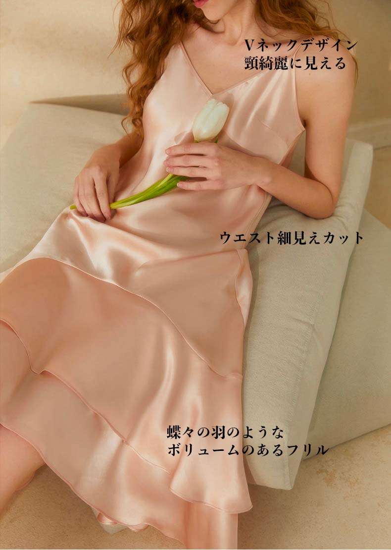・ワンピースとしてはもちろん、カジュアルドレスや贅沢な夜のネグジェとしても ・大人の女性にとってシンプルこそが最高に可愛い。