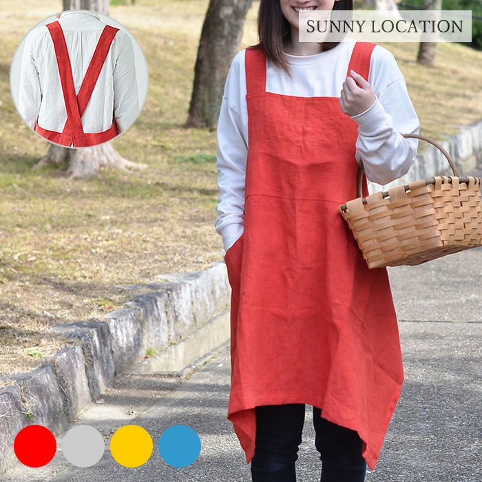 エプロン SUNNY LOCATION サニーロケーション バッククロス エプロン 日本製 リネン 100% おしゃれ かわいい アズマファブリック シンプル 母の日 プレゼント 大きいサイズ フリーサイズ 無地 チュニック 大人可愛い 赤 黄色 北欧