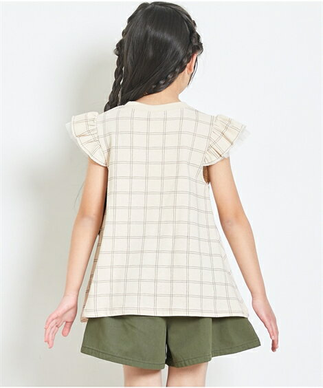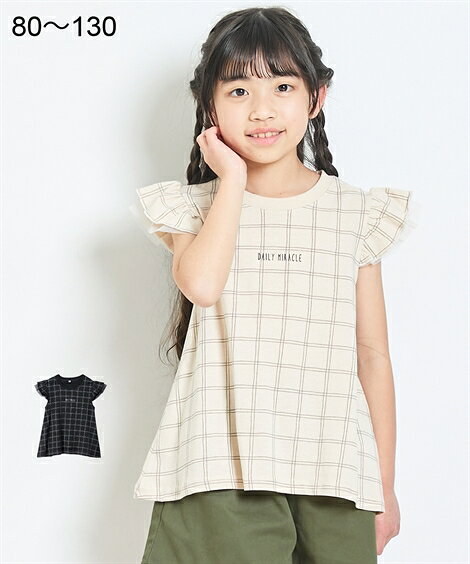 Tシャツ カットソー キッズ 女の子 チュール使い プリント 子供服 キナリ 花柄 〜ベージュ チェック 身長100/110/120/130cm ニッセン nissen