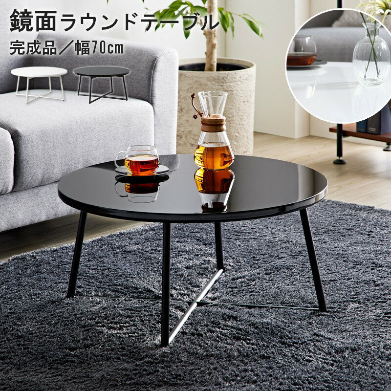 鏡面ラウンドテーブル 円形 幅70cm お部屋の中心に置いて、360度どこからでも使える円形リビングテーブルです。