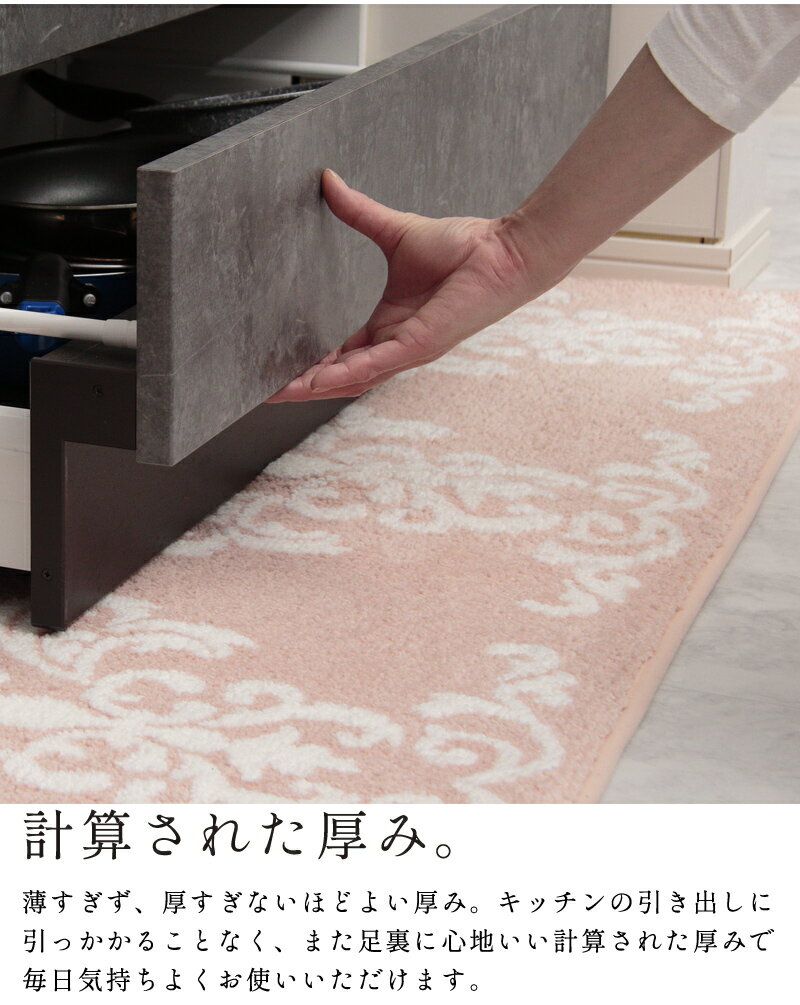 キッチンマット 180cm 北欧 おしゃれ 速乾 ふわふわ マイクロファイバーパープル グレイ グレー グリーン 緑 ピンク かわいい すべり止め 洗える エテルキッチンマット45×180cm
