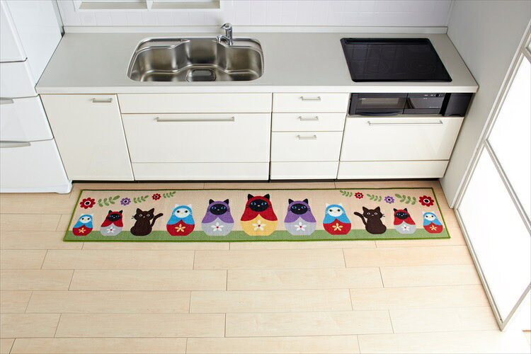ロングキッチンマット マトリョーシカねこ240cm(代引不可)【送料無料】