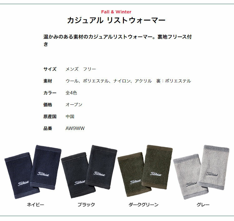 Titleist タイトリスト ゴルフ AW9WW カジュアル リストウォーマー (手首ウォーマー)