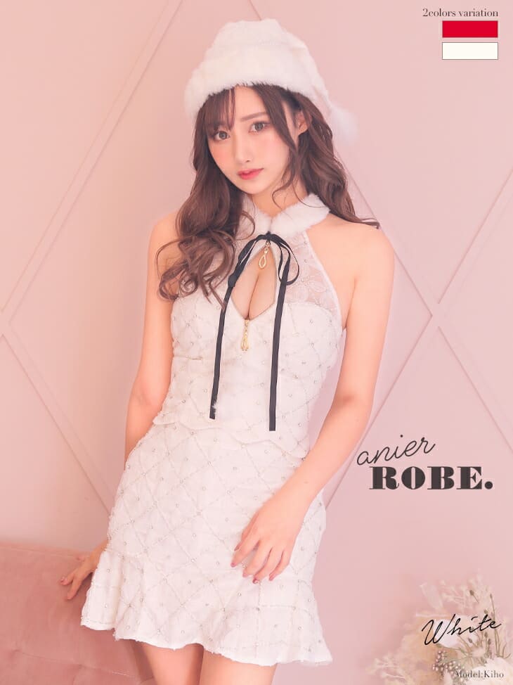 ローブドフルール ROBEdeFLEURS anier4008 フェミニン ホルター サンタ ドレス サンタコス サンタ コスプレ 高級 ツイード キャバ ドレス ワンピース ナイトドレス セクシー キャバ嬢 地雷系 量産型 ガーリー 可愛い 高級感 セール