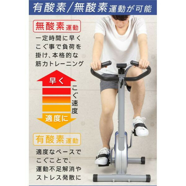 また、一定時間速くこぐ運動を数セット行うことで速筋が鍛えられ、 無酸素運動による筋力トレーニングを行うことが可能です。