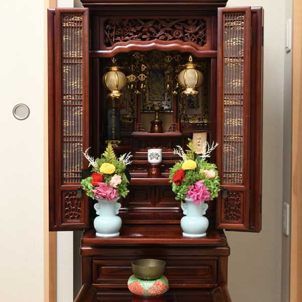 【送料無料】花瓶付き プリザーブドフラワー製 お仏壇向け飾り花(鴇紅梅) H19-572K