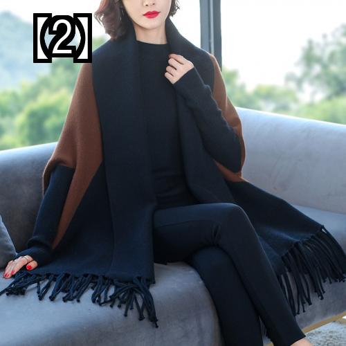 カシミヤ ショール ブロッキングカラー マント 女性用 スリーブ フリンジ 厚手のマント コート レディース 女性用 防寒 アウター