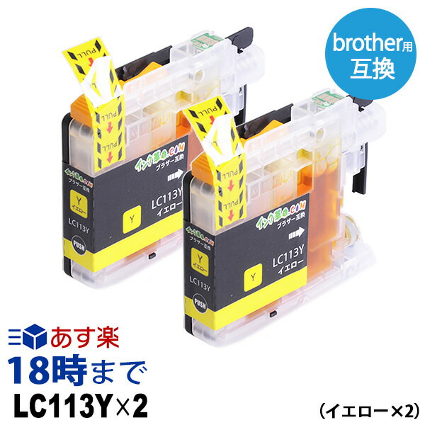 LC113Y×2 染料イエロー×2本 大容量 brother ブラザー用 互換インク プリンターインクカートリッジ 【インク革命】