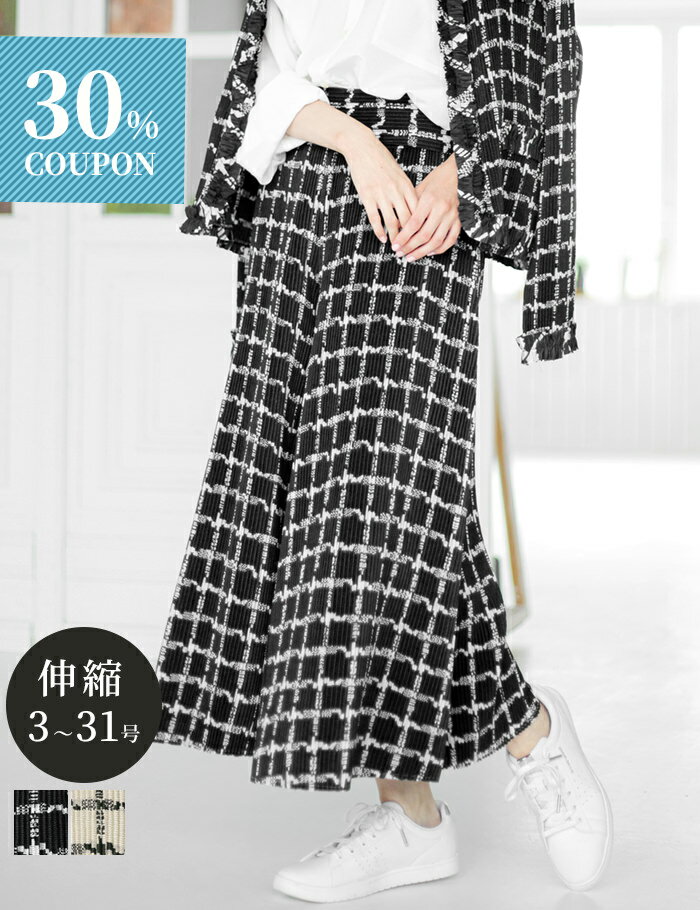 ガウチョパンツ キュロット S/M/L/LL/3L 7-21号 体型カバー 細見え 伸縮 春 夏 秋 冬 【SPECCHIO 公式店】スペッチオ レディース シャトルプリーツ ヘリンボーン柄 ワイドパンツ スカンツ きれいめ セレモニー 洗える 40代 50代 60代 大きいサイズ 送料無料