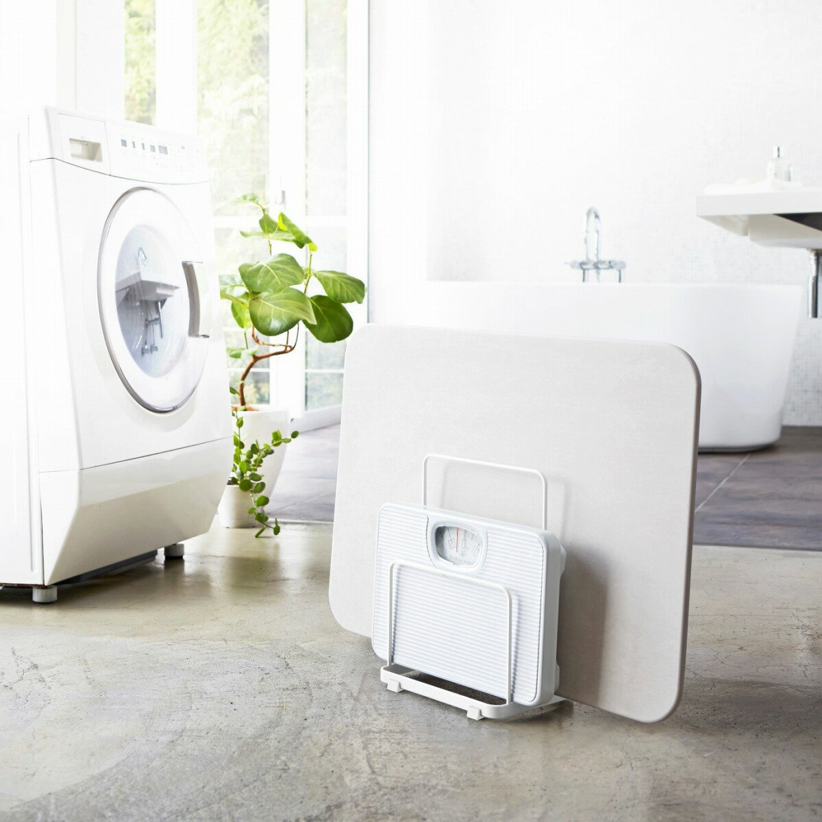 【山崎実業】『Plate 珪藻土バスマット&体重計スタンド プレート ホワイト』【インテリア バス用品 洗面用品 スタンド 雑貨 収納】